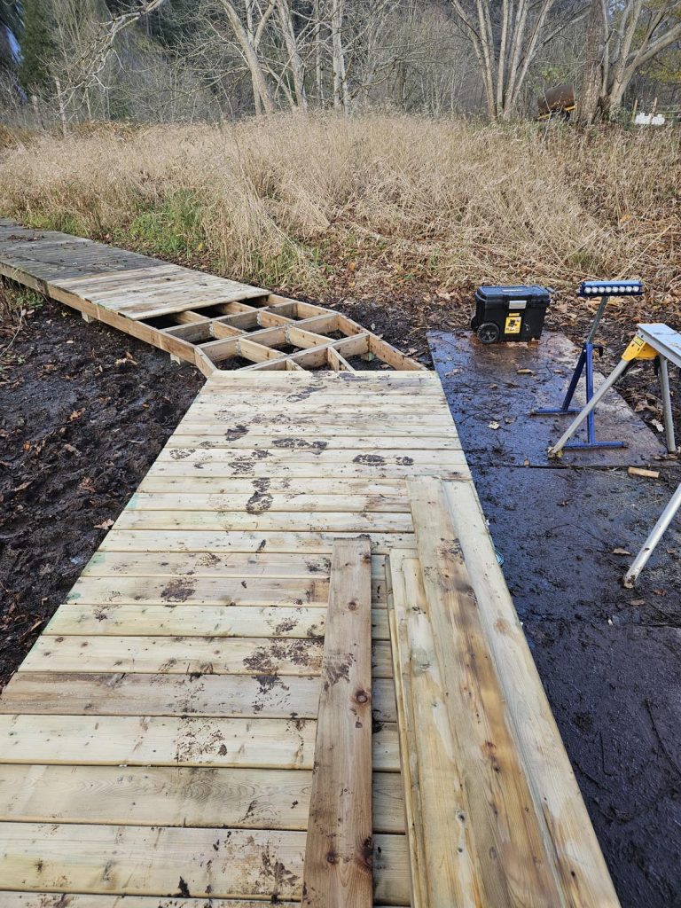 We did extensive project work for this property over the past year. Installation of a large scale irrigation system to the gardens. Construction of a large patio and privacy screening. Construction of boardwalks through a sensitive wetland area.